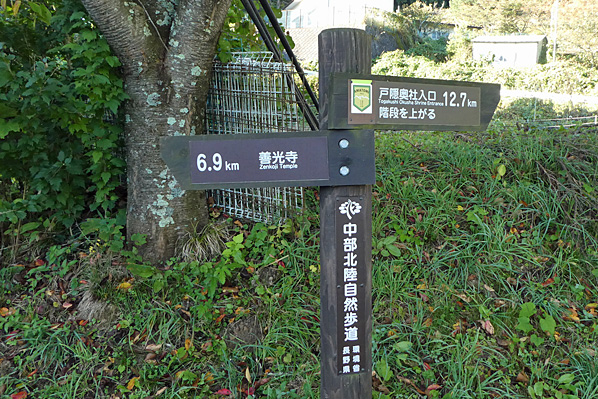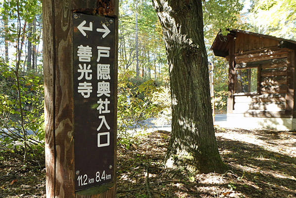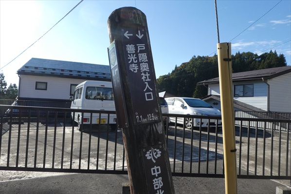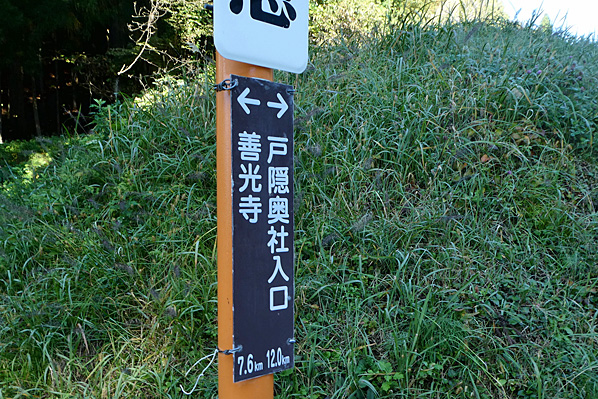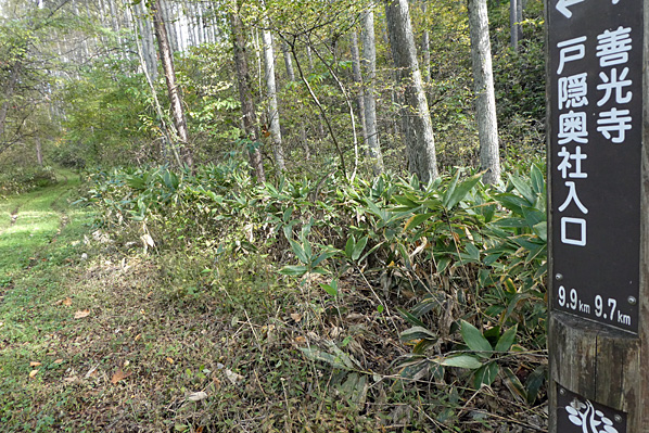 | 戸隠奥社入口まで9.9` ※我々は鏡池経由なので表示キロ数はあくまでも目安です |