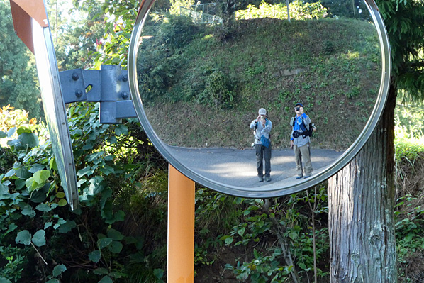 | 超レア! カーブミラーに設置された指導標 | ||||