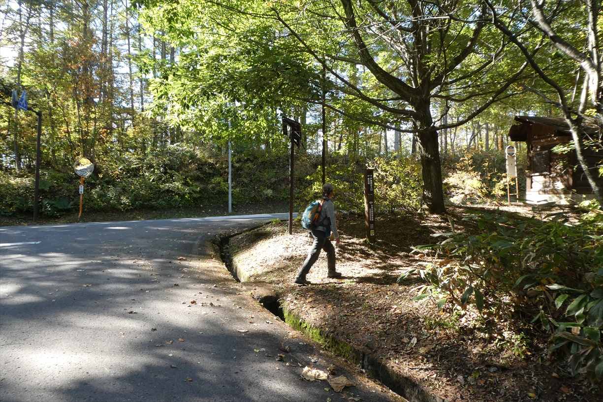 | 飯縄山南ルート登山口への車道を横切る | ||||