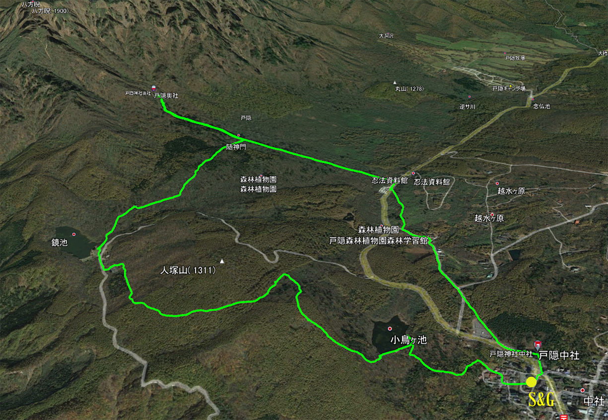 | 戸隠古道鳥瞰図 戸隠古道GPSデータ DL方法=地図画面→標高→マップ機能スクロール https://www.yamareco.com/modules/yamareco/detail-3695752.html |