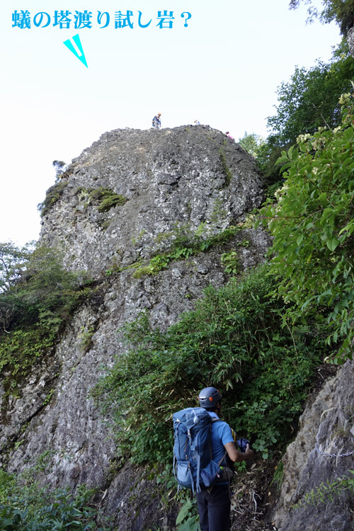 頭上の大岩は幅が狭いので蟻の塔渡りの練習にいいかも ただし3名が限度 |