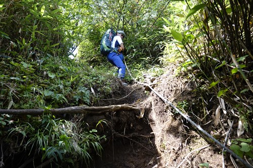 | 豪雨災害で荒れた道が戸隠牧場まで続くので慎重に下る | ||||