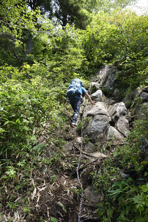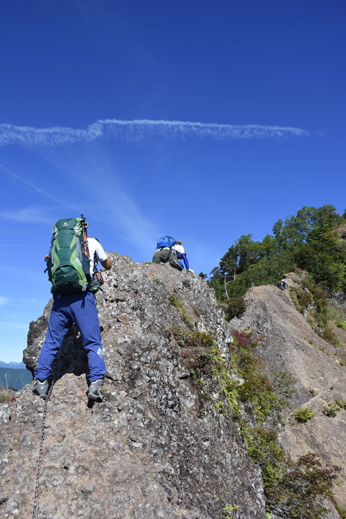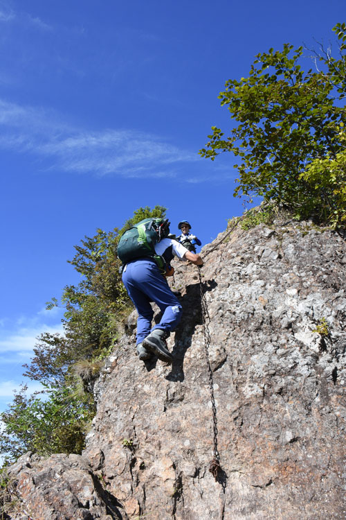 | タテヨコ鎖場は三点支持で登りましょう | ||||