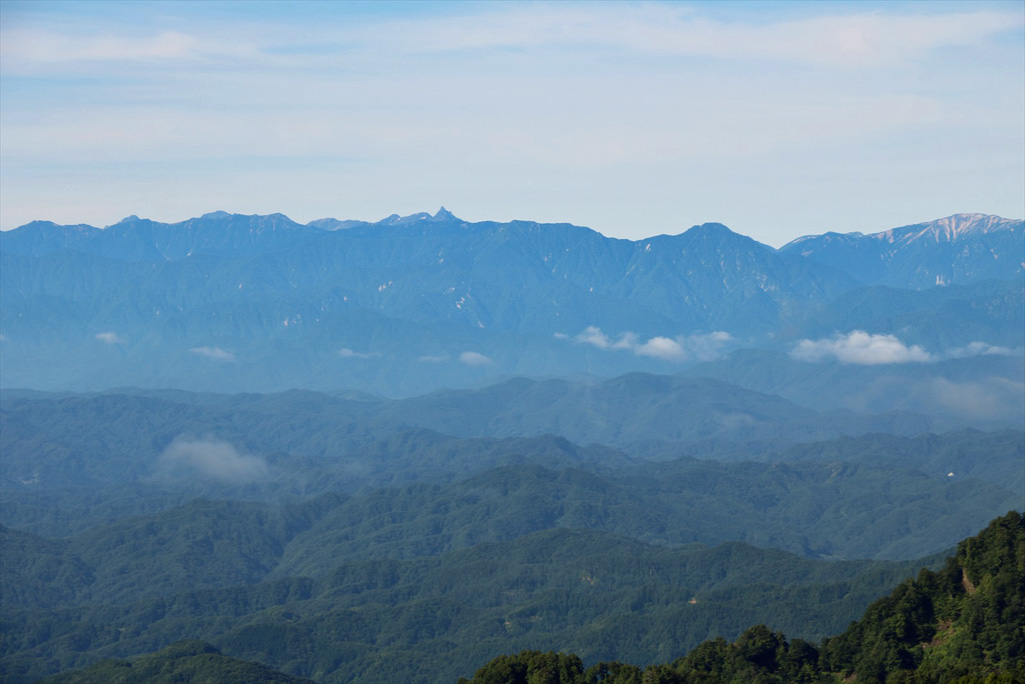 | 槍ヶ岳・野口五郎岳など北アルプス大パノラマ/蟻の塔渡り試し岩より撮影 | ||||