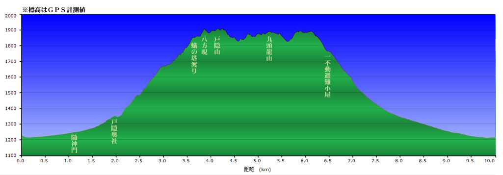 | 戸隠山・蟻の塔渡り~一不動周遊R高低図 | ||||