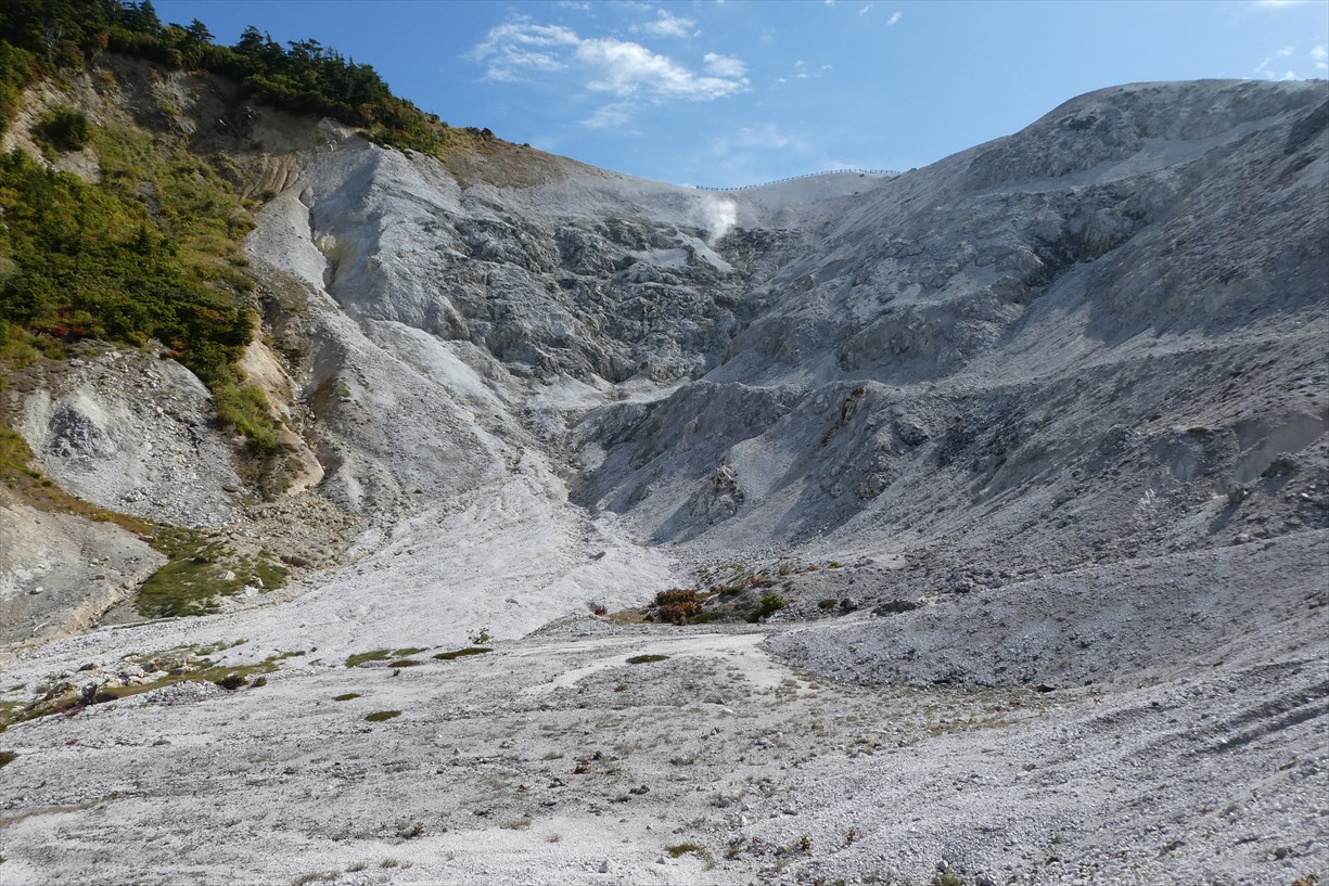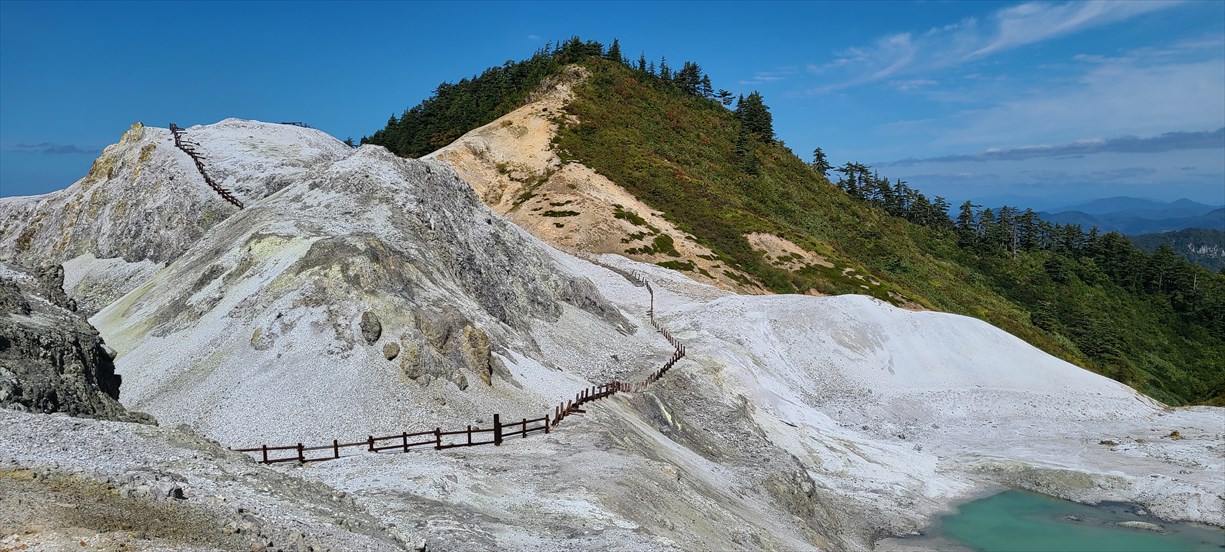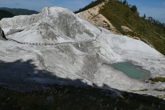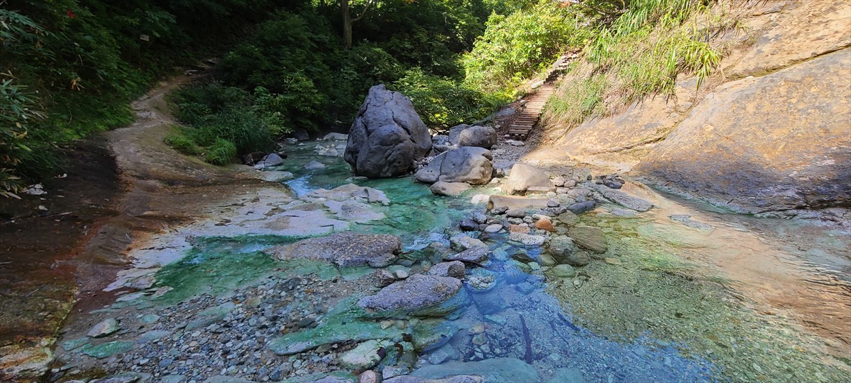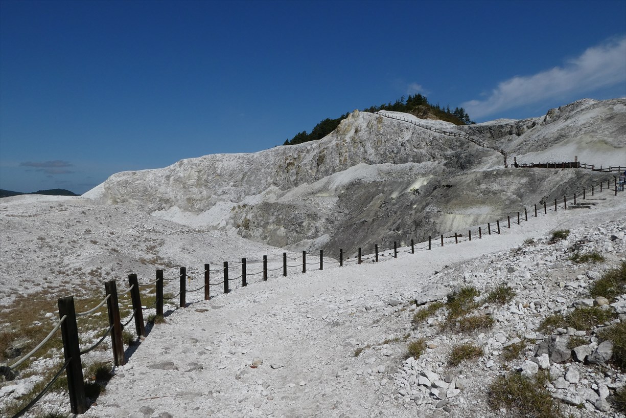 | 秋田県湯沢市・川原毛地獄駐車場(トイレあり)から川原毛大湯滝へ下る 大湯滝まで約40分 |
