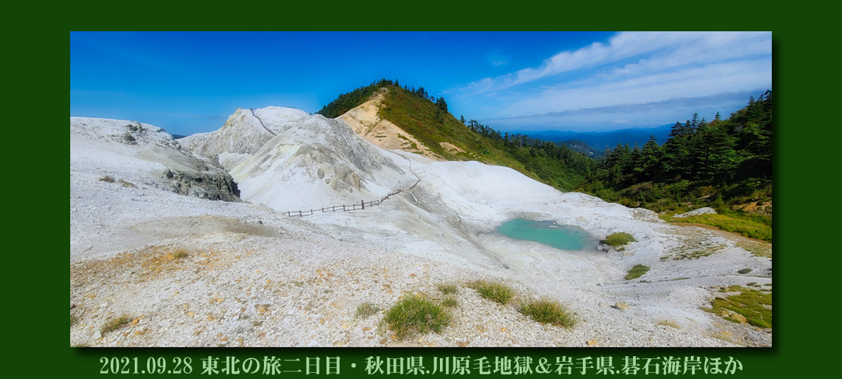 ![]() 秋田県・岩手県 2021.9.28(火)晴れ 川原毛地獄・川原毛大湯滝・彼岸花の如意輪寺・碁石海岸など |