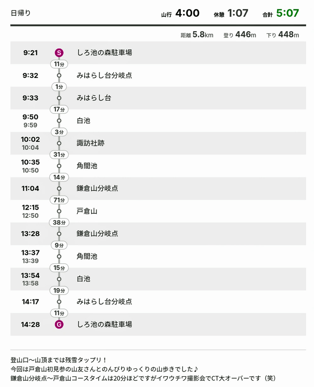 | 《戸倉山コースタイム他》 写真撮影時間20分〜100分含む |