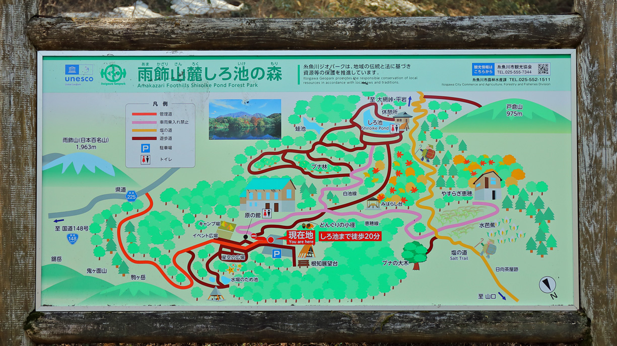 | 雨飾山麓しろ池の森駐車場(トイレあり) | どんぐりの小径 | |||