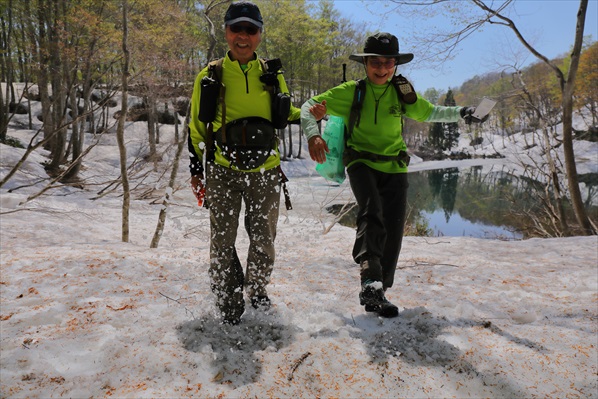 | こんなに残雪が多いとは・・・ イワウチワ咲いていてくれるかなぁ〜? | ||||