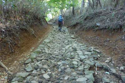 足の下ろす箇所を間違えると捻挫しやすい石ゴロ道 |