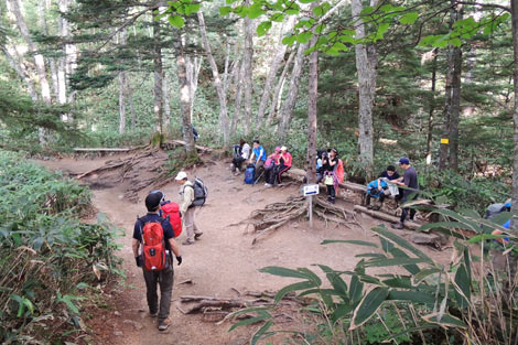 途中で意気投合したホヤホヤの山友とのことで、家族は遙か後方らしい(笑) |