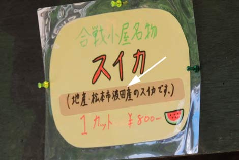合戦小屋名物・スイカ 800円 |