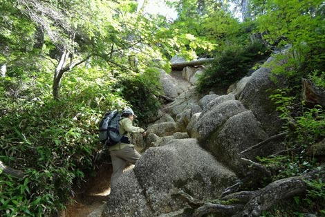ギザギザ花崗岩の岩ゴロ道
