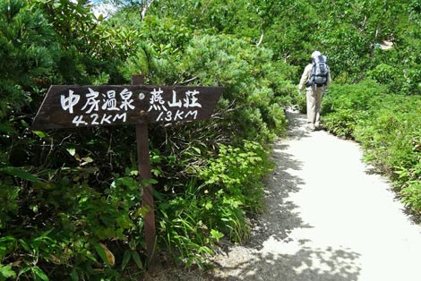 車道歩きで中房温泉へ向かう |