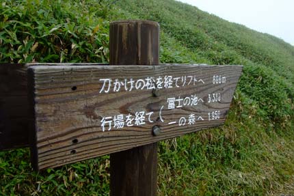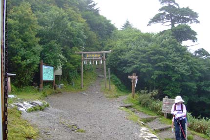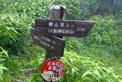 | 登山リフト山頂駅から鳥居を潜って大剣神社へ | 大剣神社への道標 | |||