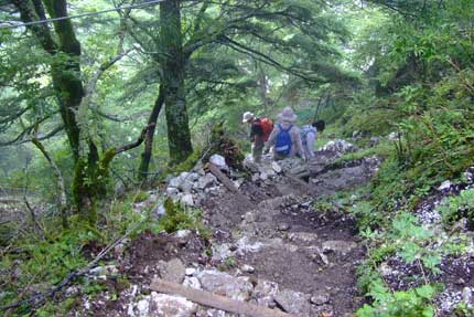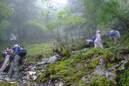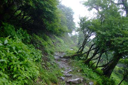 | 頂上ヒュッテから行場を経てキレンゲショウマ群生地へ | ||||