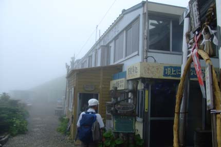 | 剣山本宮の鳥居を潜って | 頂上ヒュッテ ここでピンを購入 |