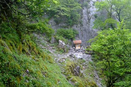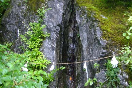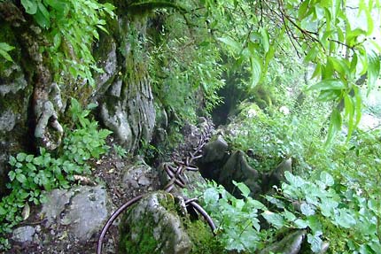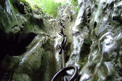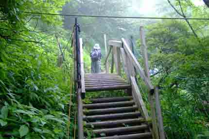 | 行場へ向かう | 不動の岩屋に架かる、おくさり(上から) | |||