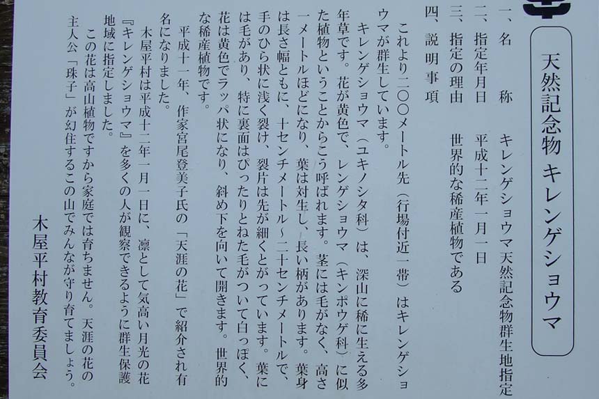 | 天然記念物・キレンゲショウマ解説板 | ||||