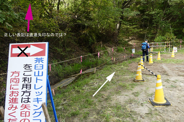 看板を横向きに置いてくれれば左側ルートに入ったのに、正面向きで設置されていたため進入不可と思い込み |