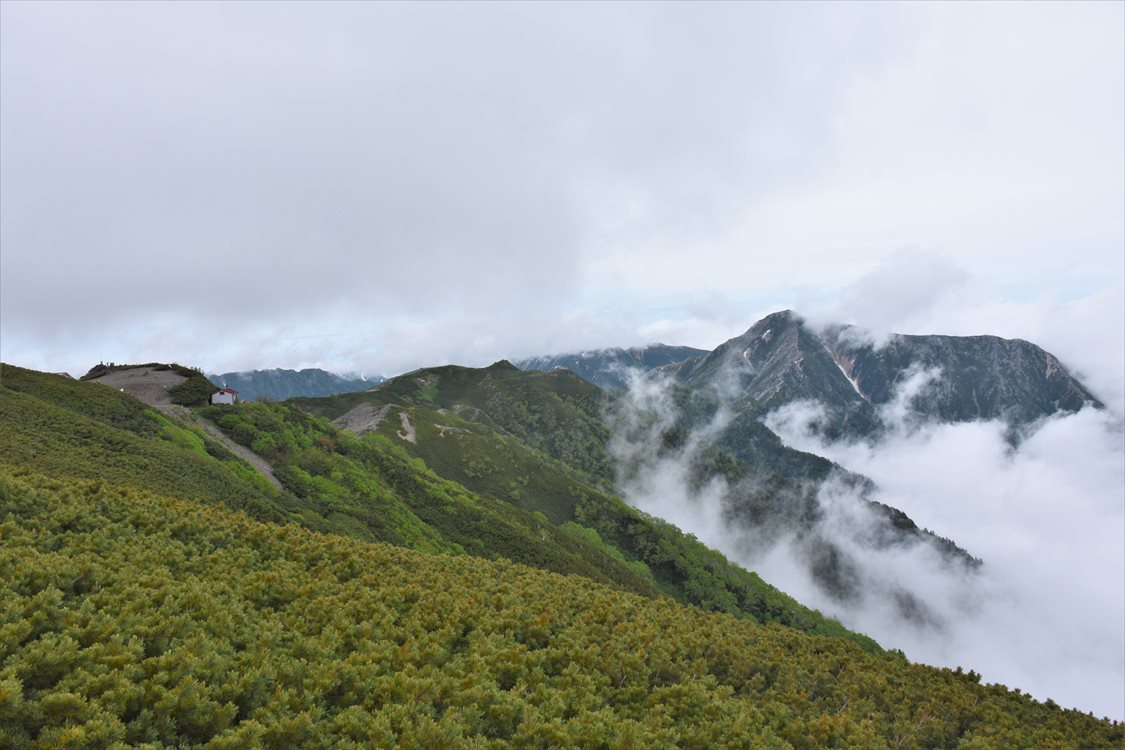 | 視線を右に移せば大天井(オテンショ)と爺ヶ岳を展望 | ||||