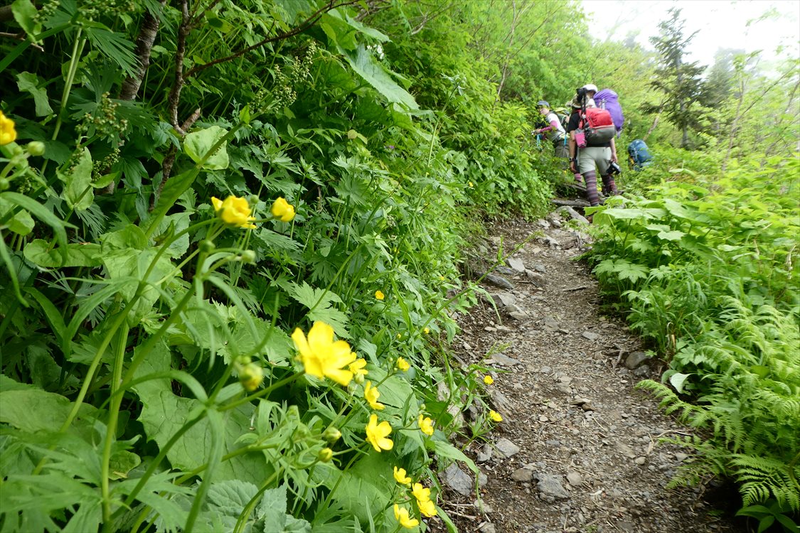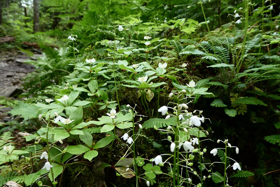 | しばらく平坦道でオサバグサ&ゴゼンタチバナの花道が続く | ||||