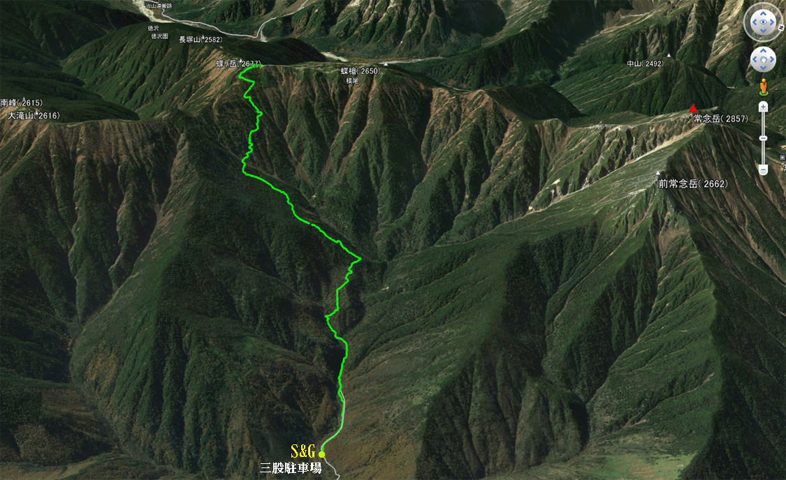 | 三股駐車場〜蝶ヶ岳高低図 | ||||