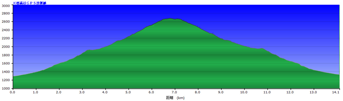 | 三股駐車場標高/1276m 標高差/1401m 累積標高/1691m 総歩行距離/14153m | ||||