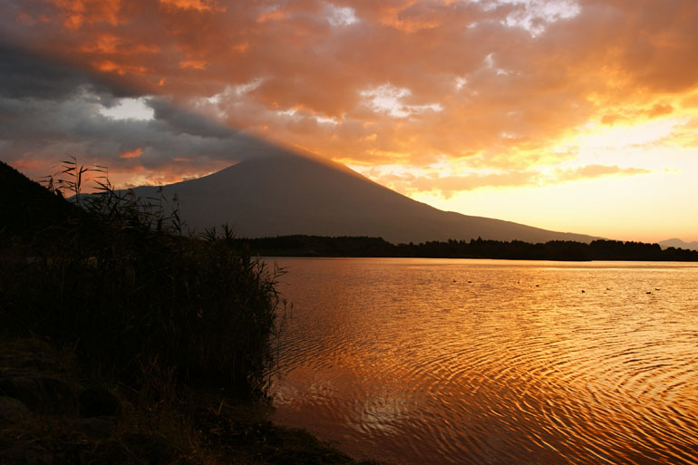 第二ベンチ分岐点からの富士山と田貫湖 |