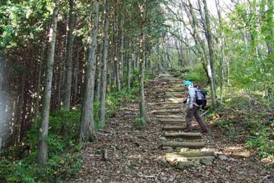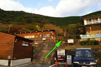 田沼湖キャンプ場Pのトイレ横の階段が登山口 |