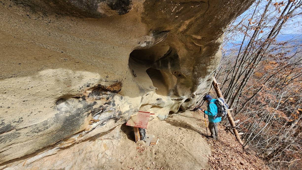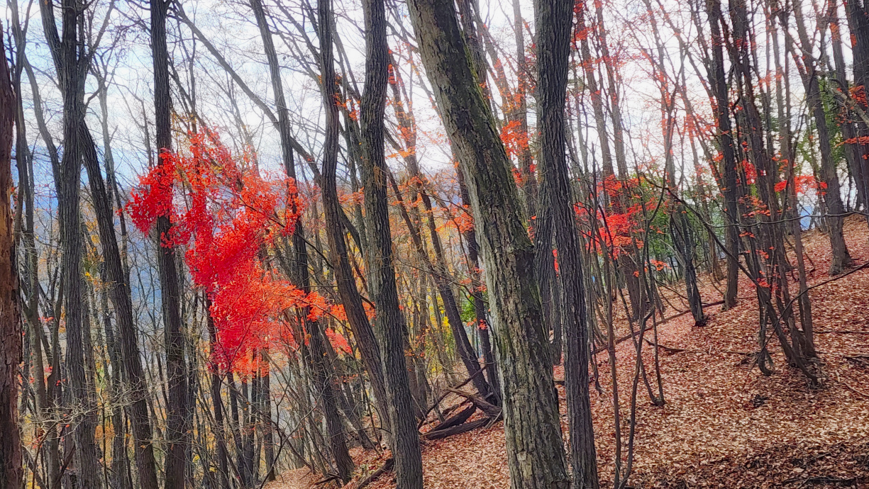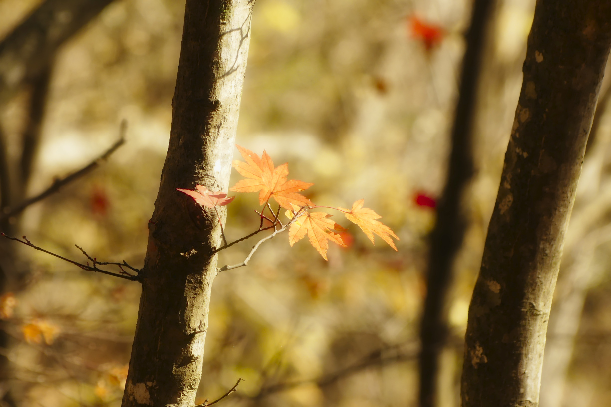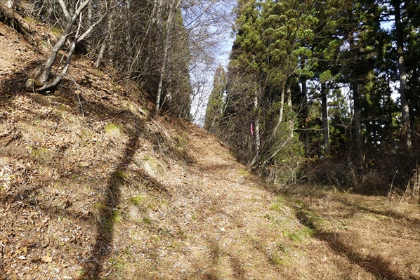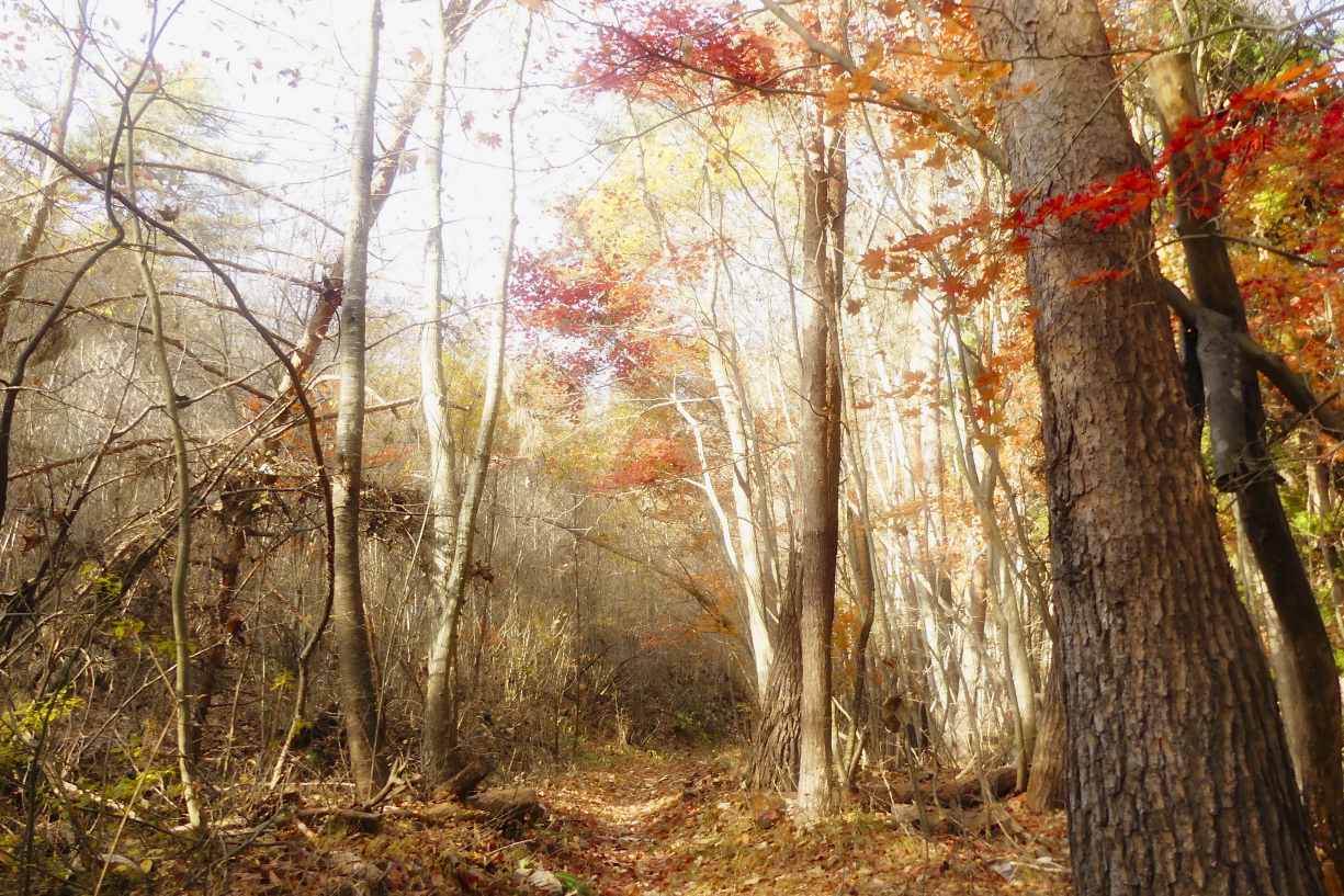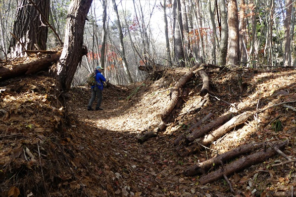 厚い落ち葉が原因で上り下りとも靴のグリップがまったく効かないので要注意! |