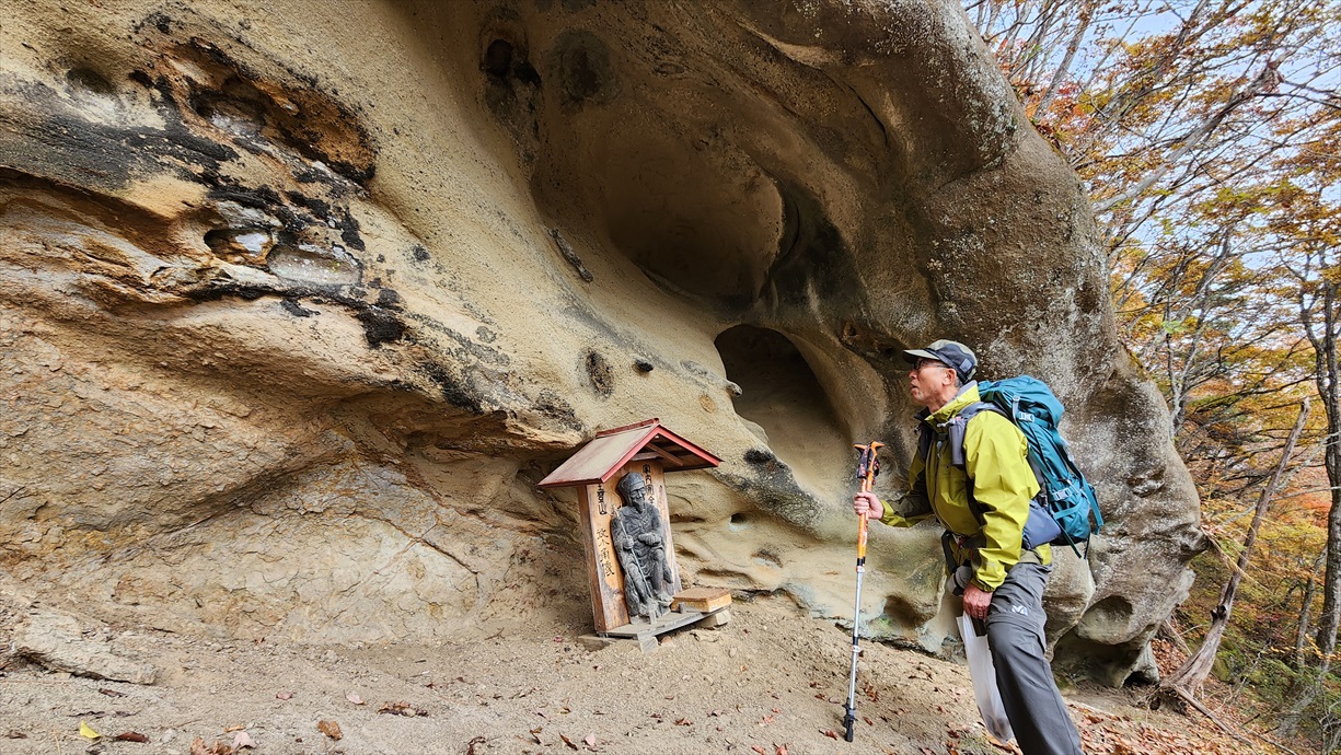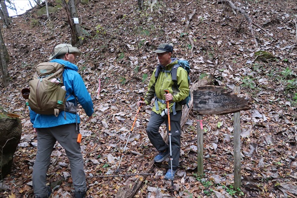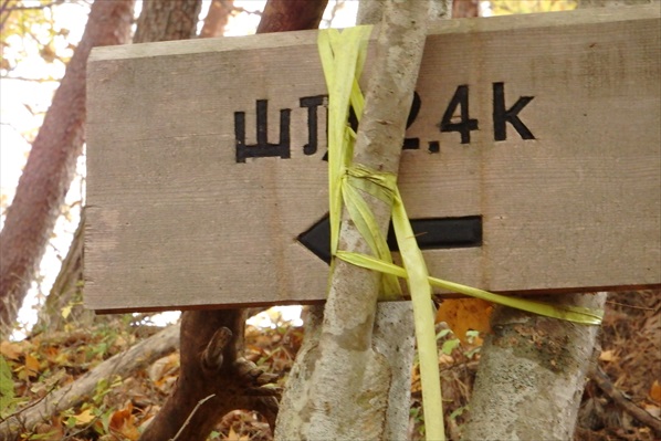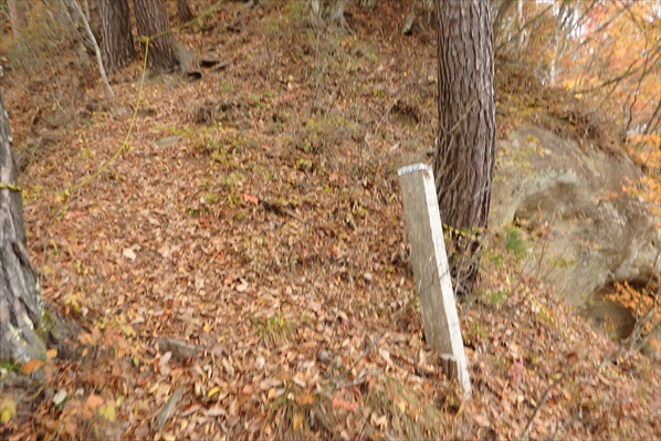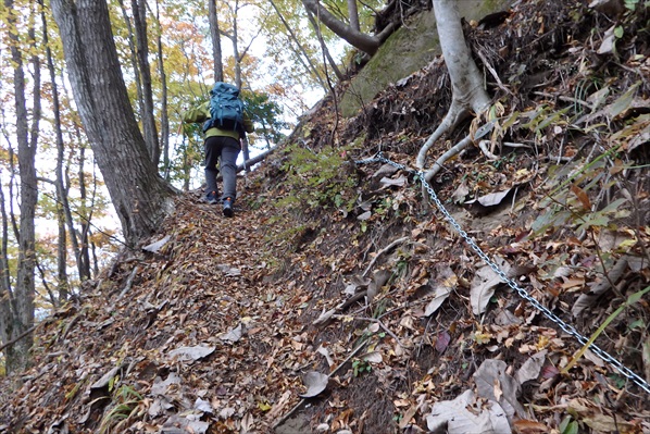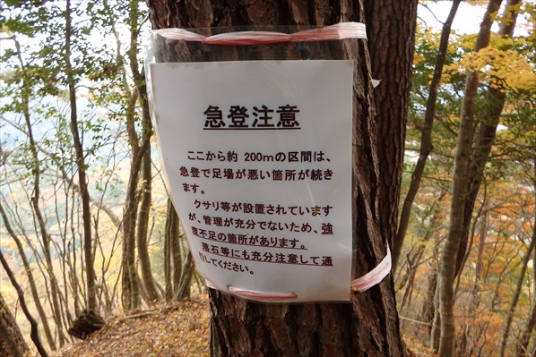 | 山頂間で1.3`指導標&クサリ設置地点 ※ここから200b区間は上り下りとも慎重に歩く必要あり |