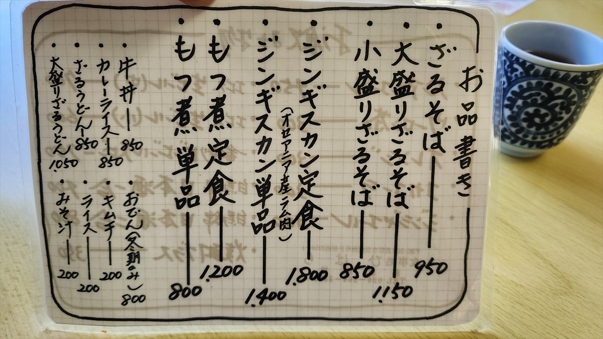 | ジンギスカン定食も扱っているのでお蕎麦目当てのときは開店と同時か閉店間際がオススメ! | ||||