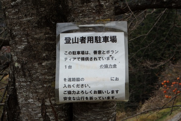 | 林道歩きで登山口へ向かう | 前方通行止め看板地点が登山口 | |||