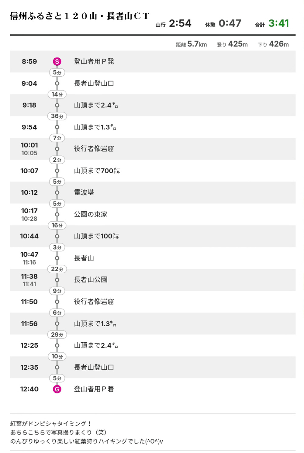 | 《長者山コースタイム他》 写真撮影時間20分〜100分含む |
