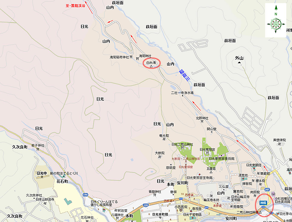 日光市・神橋〜白糸の滝〜最終ゲート〜洞門岩〜雲龍渓谷入口までの道案内サイト