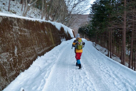 白糸の滝から最終ゲート(数台駐車可)、以後は洞門岩まで林道歩きとなる |