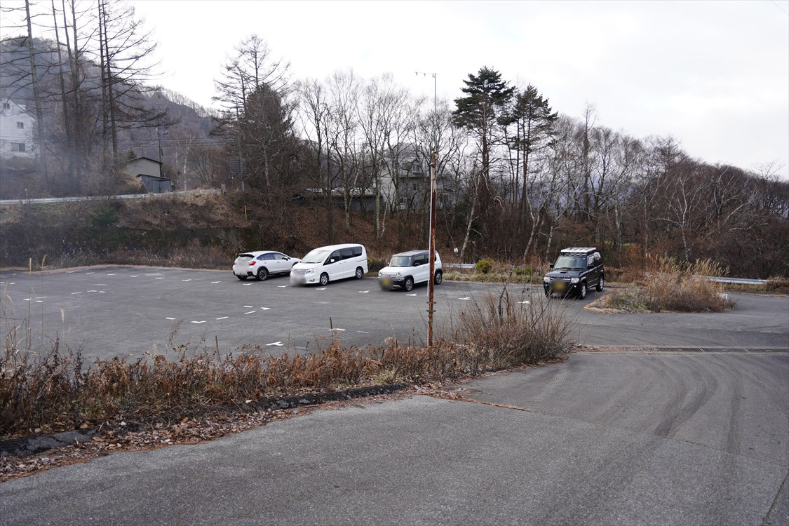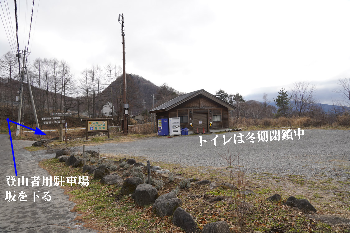| 三城いこいの広場・登山者用無料駐車場入り口 トイレは冬期閉鎖中 |