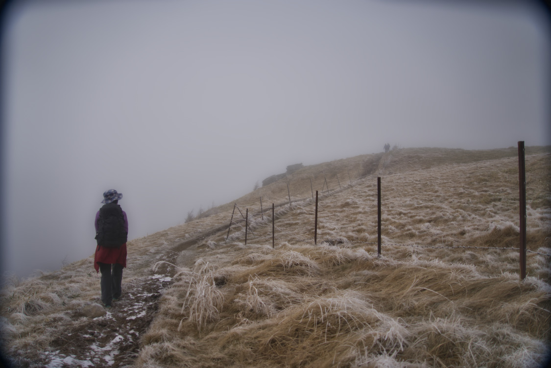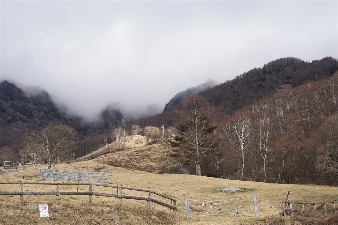| 美ヶ原牧場の柵に沿って王ヶ頭へ向かう | ||||