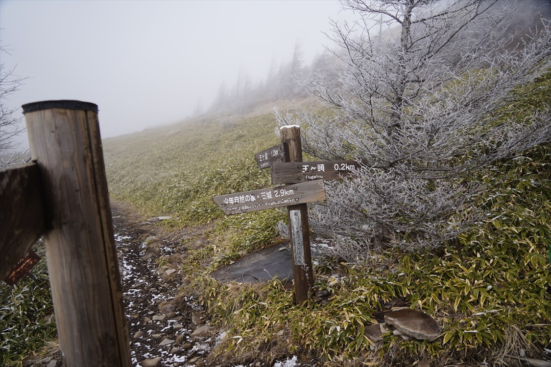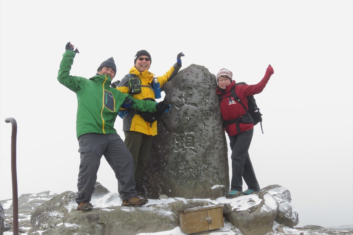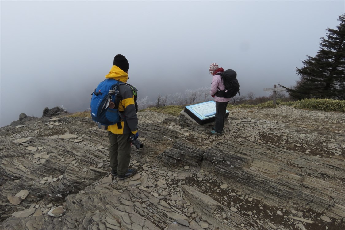 | 日本百名山展望地 前回訪問に続きまたしてもガスガスの展望地(ノД`) 次回は強力扇風機持参でくるぞ〜(^O^)v |
