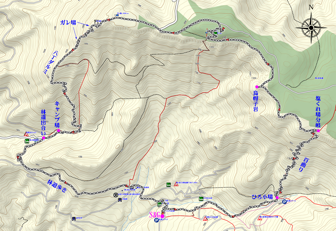 | この地図は国土交通省・国土地理院長の承認を得て同院発行の 1:25000地形図に基づき作成された 承認番号(平19総使、第186-21250号)を転載したものです。《使用ソフト・GARMIN MapSource》 |