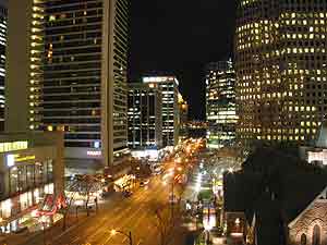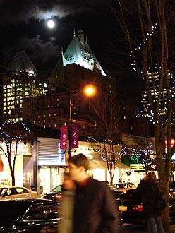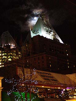 ![]() ダウンタウンを歩く時は(昼夜)ホテルバンクーバーの屋根を目印に歩きます。 |