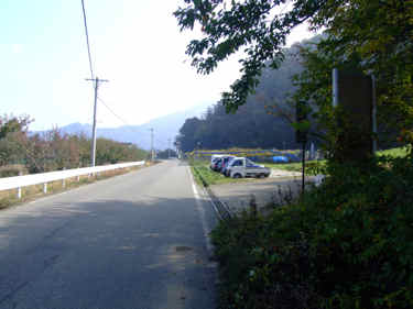 | 天王山ルート駐車場(トイレ・水無し) | 天王山登山口&MAPポスト (山頂まで3598mの行程とある) |