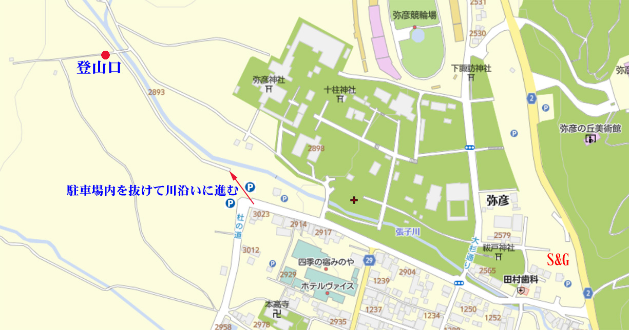 | 登山口への概略図 | ||||