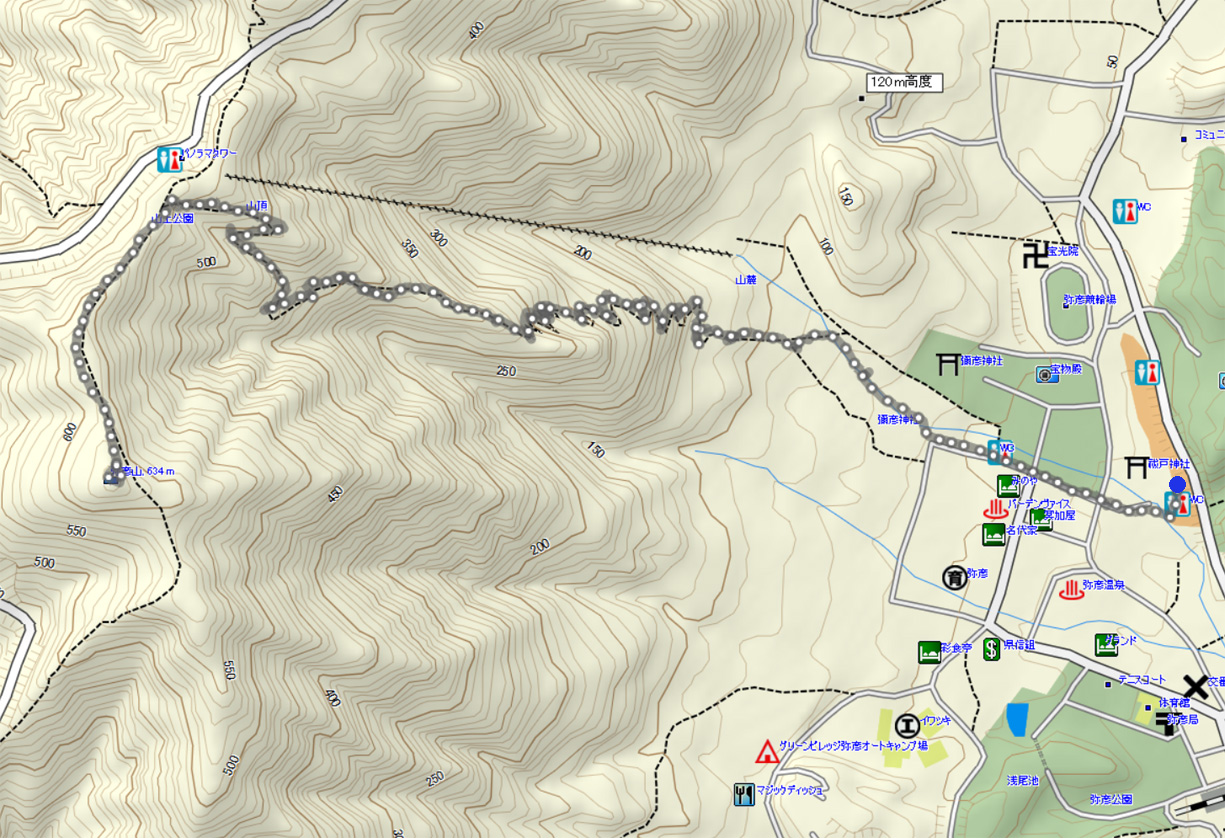 | 弥彦山ルート地図 (計曲線 50M 主曲線 10M) |