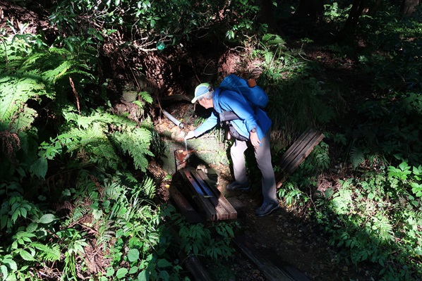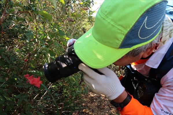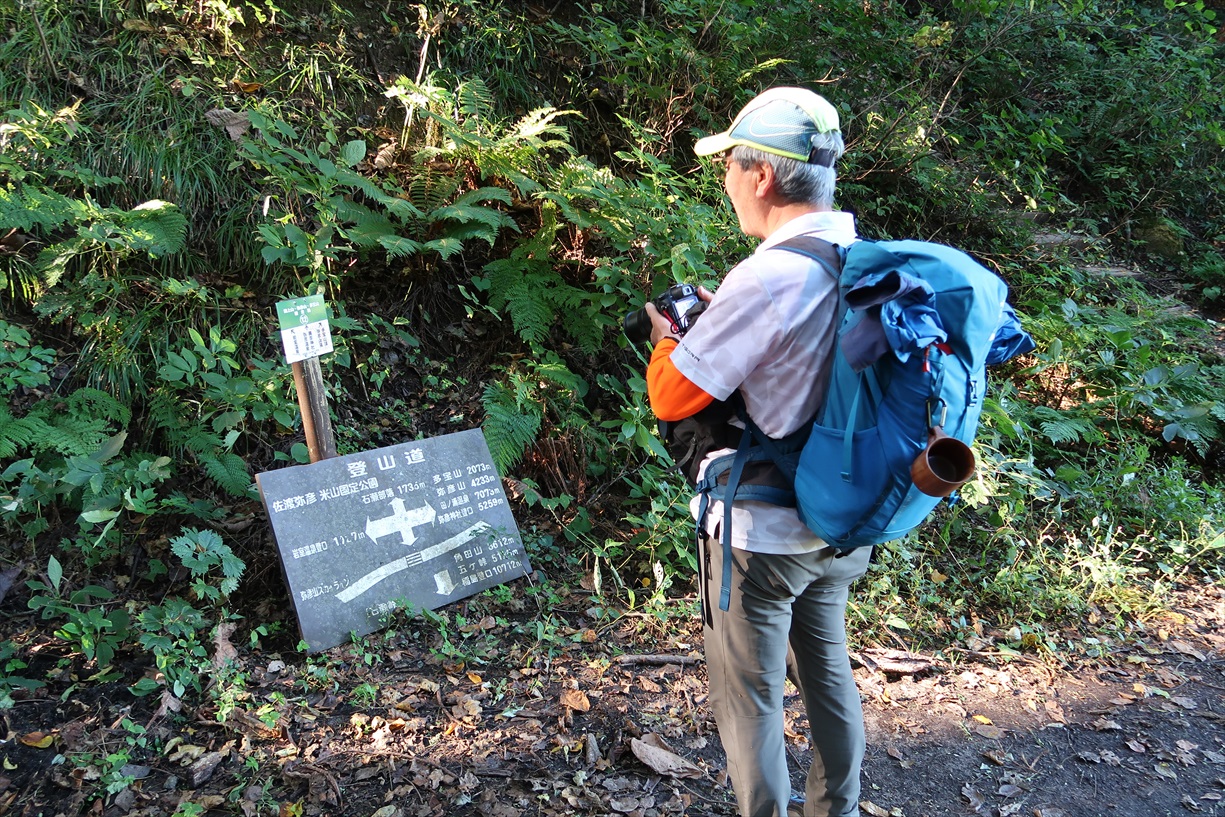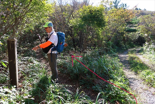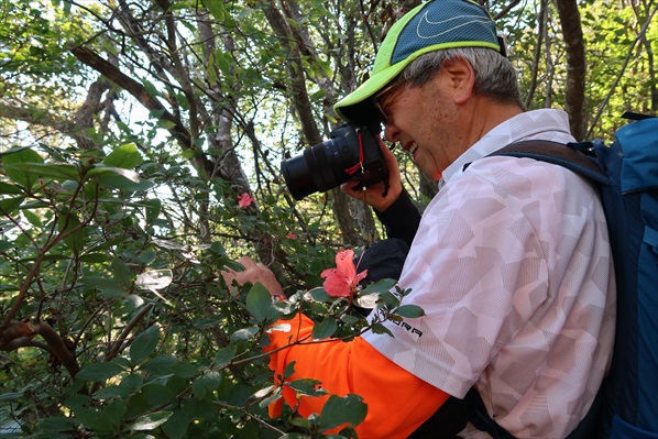 | ツツジ撮影中 | この指導標地点で広々登山道に出る | |||