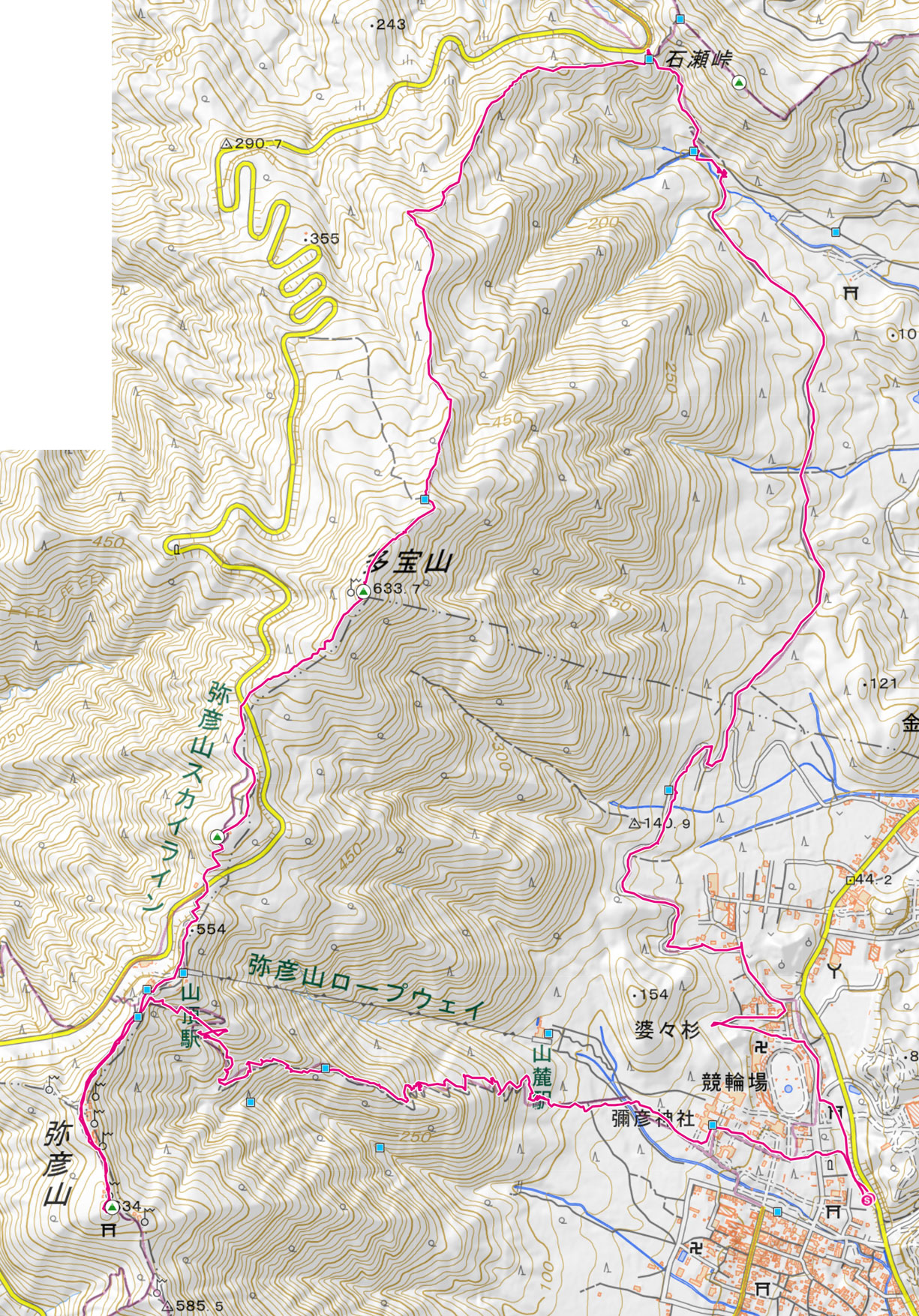 | 多宝山〜弥彦山ルート地図 (計曲線 50M 主曲線 10M) |