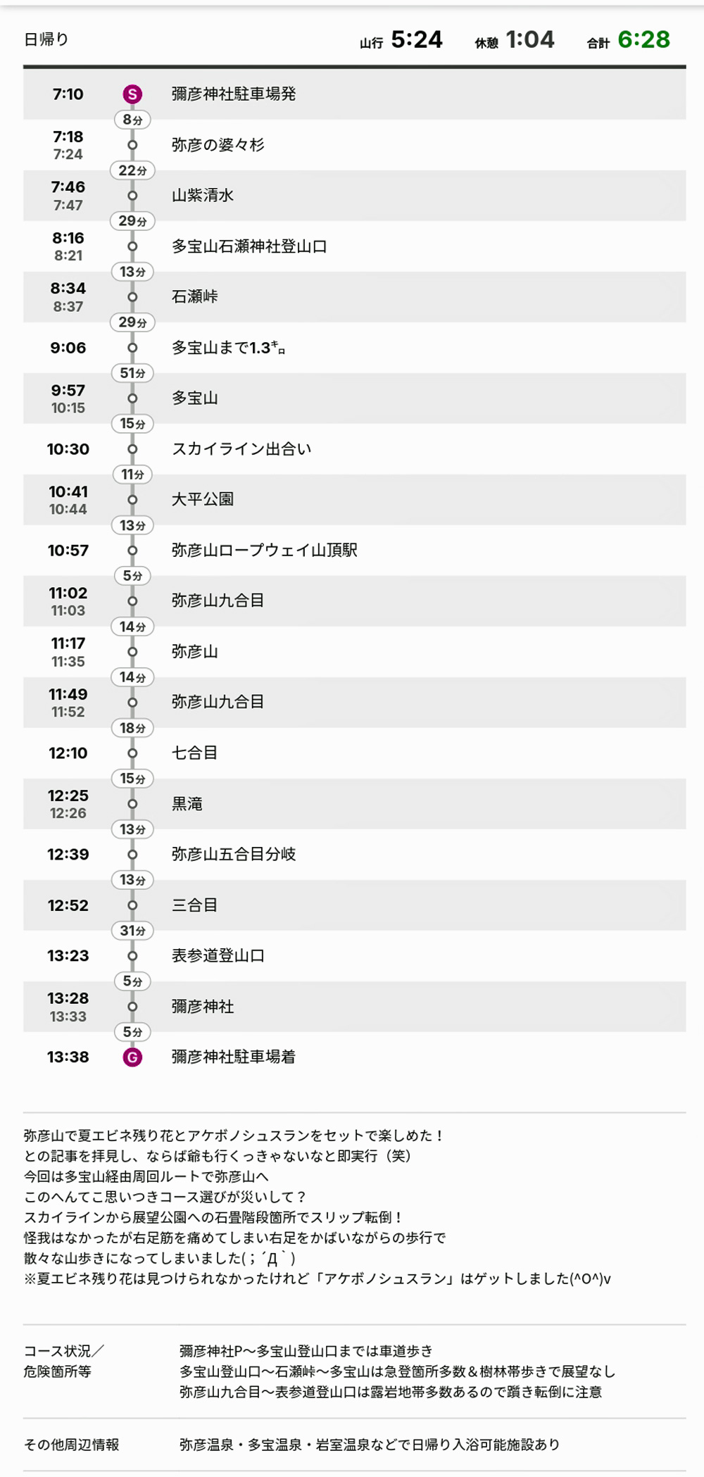 | 《多宝山〜弥彦山コースタイム他》 写真撮影時間20分〜100分含む |
