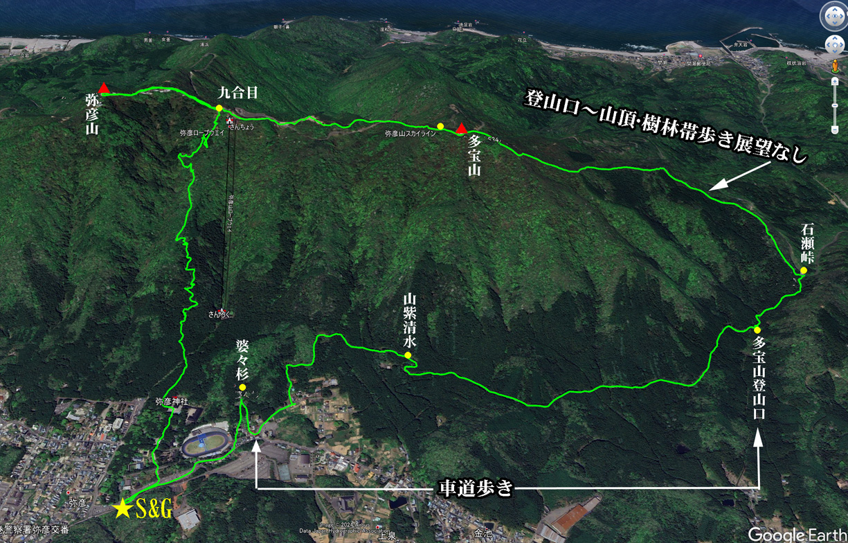 | 多宝山〜弥彦山鳥瞰図 ヤマレコ⇒https://www.yamareco.com/modules/yamareco/detail-7396932.html |